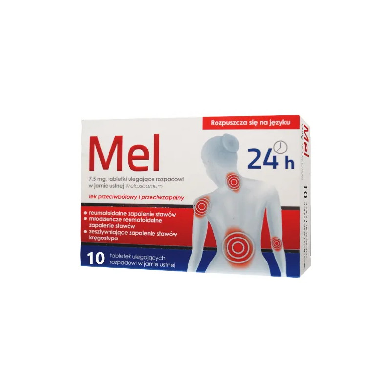 Mel to lek w postaci tabletek ulegających rozpadowi w jamie ustnej. Substancją czynną preparatu jest meloksykam zaliczany do grupy niesteroidowych leków przeciwzapalnych (NLPZ) o działaniu przeciwzapalnym, przeciwbólowym i przeciwgorączkowym. Mechanizm działania przeciwzapalnego meloksykamu polega na preferencyjnym hamowaniu cyklooksygenazy COX-2 w stosunku do COX-1.