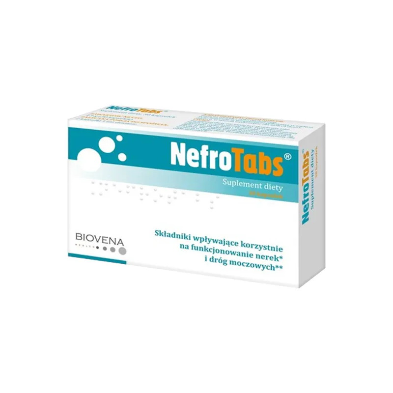 Nefrotabs - suplement diety zawierający pięć ekstraktów roślinnych, które wspomagają wydalanie z organizmu nadmiaru wody i szkodliwych produktów przemiany materii. Produkt przeznaczony dla osób dorosłych.