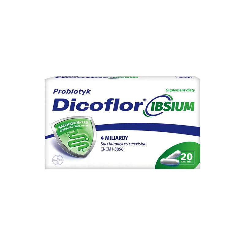 Dicoflor Ibsium - suplement diety w postaci kapsułek. Produkt przeznaczony dla dzieci powyżej 3. roku życia i dorosłych. Probiotyk zawierający suszone, żywe komórki drożdży Saccharomyces cerevisiae CNCM I-3856 o udowodnionym w badaniach klinicznych bezpieczeństwie stosowania.