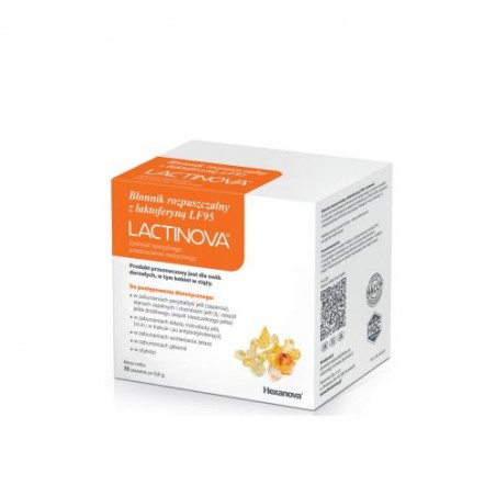 Lactinova® Błonnik rozpuszczalny z Laktoferyną LF95 to żywność specjalnego przeznaczenia medycznego w postaci saszetek z proszkiem, zawierającym połączenie laktoferyny LF95 Mediferrin™ (o 95% czystości) i rozpuszczalnego błonnika akacjowego Fibregum® oraz witaminy C.