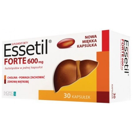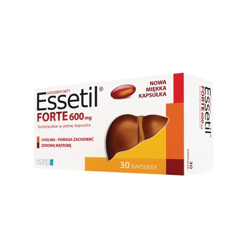 Essetil Forte kapsułki to przeznaczony dla osób dorosłych suplement diety, który zawiera fosfolipidy z nasion soi, standaryzowane za zawartość choliny.