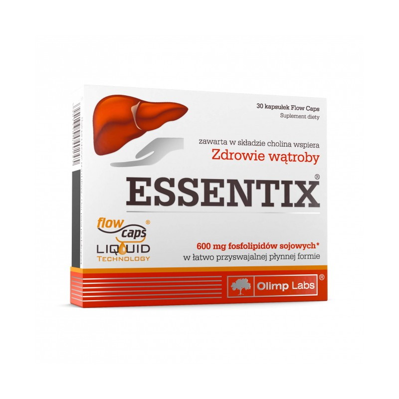 Essentix to suplement diety marki Olimp Labs przeznaczony dla osób dorosłych, które dążą do zapewnienia prawidłowego funkcjonowania i utrzymania korzystnej kondycji wątroby oraz jako uzupełnienie codziennej diety w fosfolipidy. Preparat polecany szczególnie osobom, których wątroba narażona jest na działanie czynników, m.in.: ciężkostrawnej diety, alkoholu, leków.