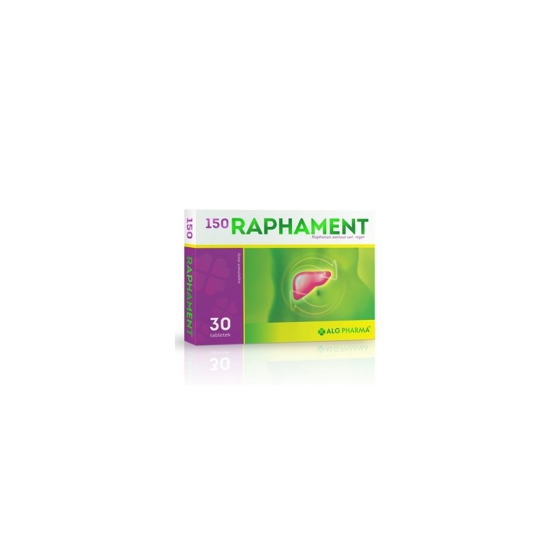 Raphament 150 to suplement diety o wysokiej jakości zawierający specjalnie dobraną kompozycję składników aktywnych korzystnie wpływających na trawienie i pracę wątroby ( cholina, karczoch). Suplement diety wzbogacony został dodatkowo o L-asparaginian L- ornityny, olejek miętowy oraz ekstrakt z rzodkwi czarnej.
