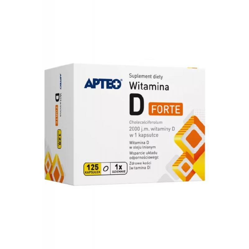 Witamina D Forte APTEO to suplement diety w postaci kapsułek, zawierający 2000 j.m. witaminy D.