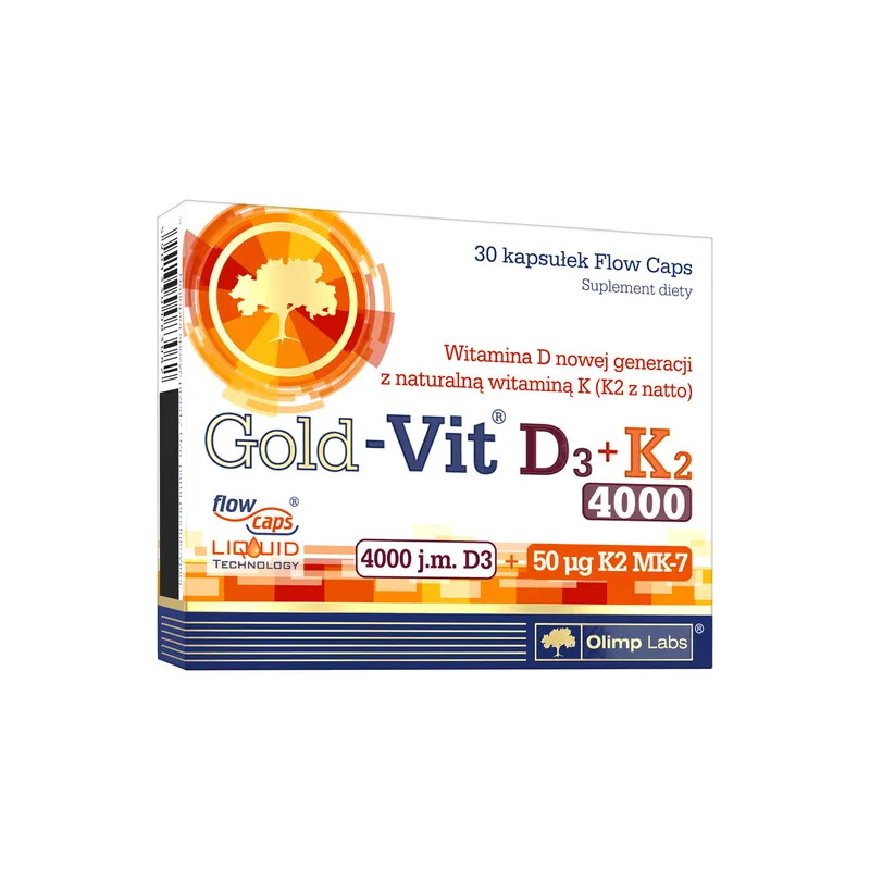Olimp Gold-Vit D3 + K2 4000 - to suplement diety z witaminą D3 i K, która pochodzi z natto. Produkt przeznaczony dla zdrowych osób dorosłych po 75. roku życia.