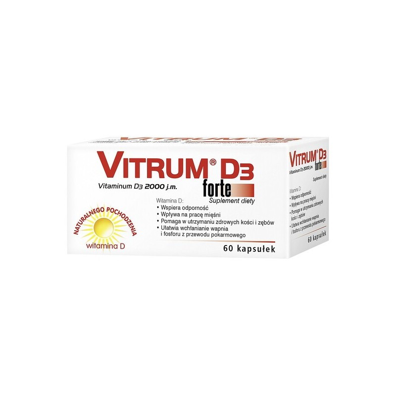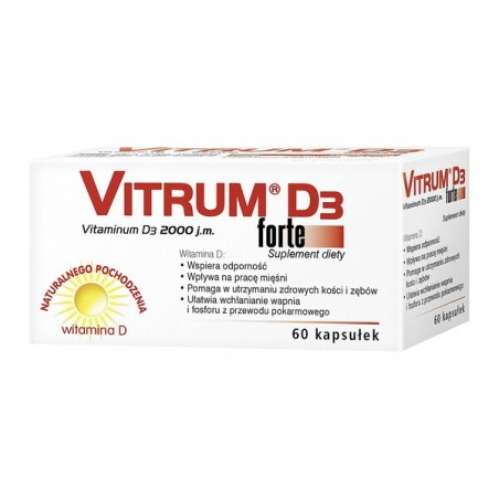 Vitrum D3 - suplement diety zawierający witaminę D rozpuszczoną w oleju z krokosza barwierskiego. Produkt przeznaczony dla osób dorosłych i dzieci powyżej 6 roku życia.