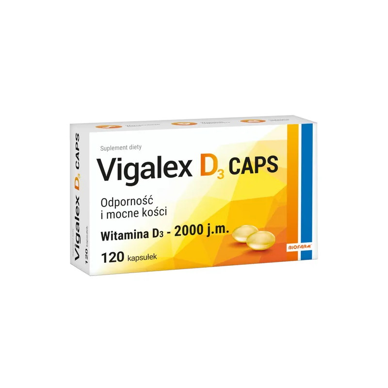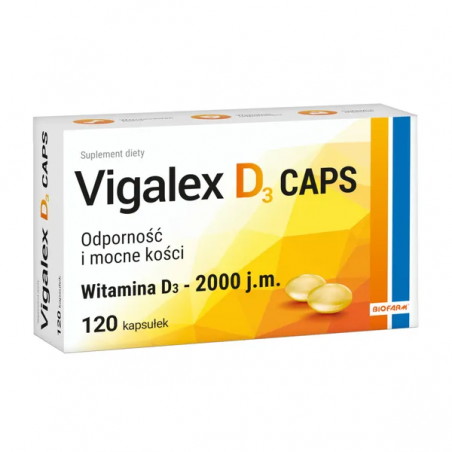 Vigalex D3 Caps 2000 j.m. - to suplement diety z witaminą D3 w postaci kapsułek miękkich. Produkt przeznaczony dla osób dorosłych do 75. roku życia.