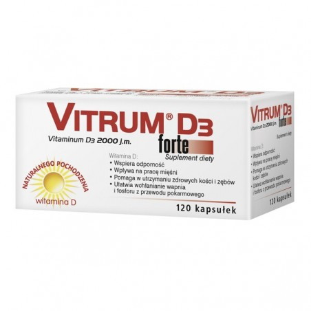Vitrum D3 - suplement diety zawierający witaminę D rozpuszczoną w oleju z krokosza barwierskiego. Produkt przeznaczony dla osób dorosłych i dzieci powyżej 6 roku życia.