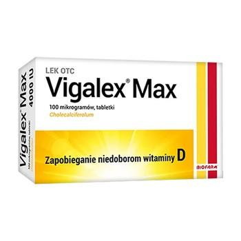 Vigalex Max 4000 IU (jednostek międzynarodowych) zawiera cholekalcyferol - substancję analogiczną do witaminy D wytwarzanej w organizmie człowieka pod wpływem promieniowania słonecznego. Uczestniczy w bardzo wielu procesach m.in. przemiany materii, wspomaga budowę kości. Przeznaczony jest dla osób dorosłych.