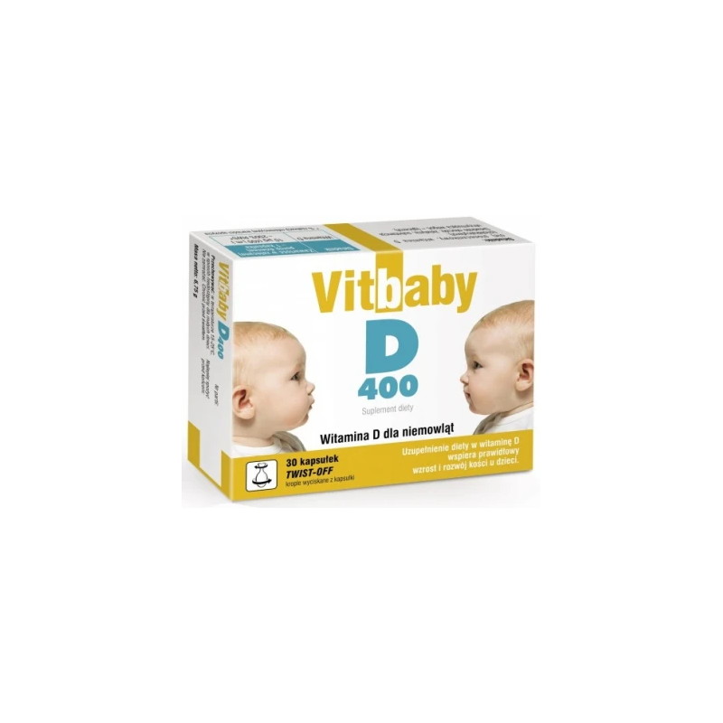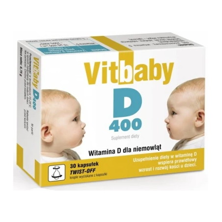 Z tych względów zaleca się uzupełnianie niedoborów witaminy D w codziennej diecie dziecka. Rekomendowana dzienna dawka witaminy D to 400 j.m. (10 µg), co odpowiada zawartości jednej kapsułki otwieranej "twist-off" preparatu Vitbaby D 400.