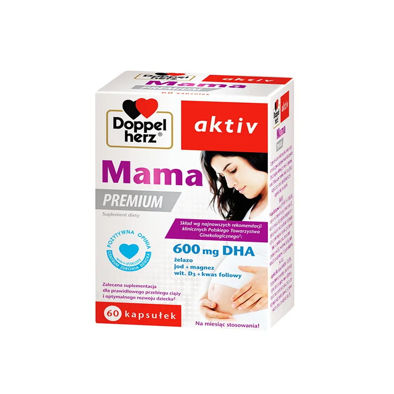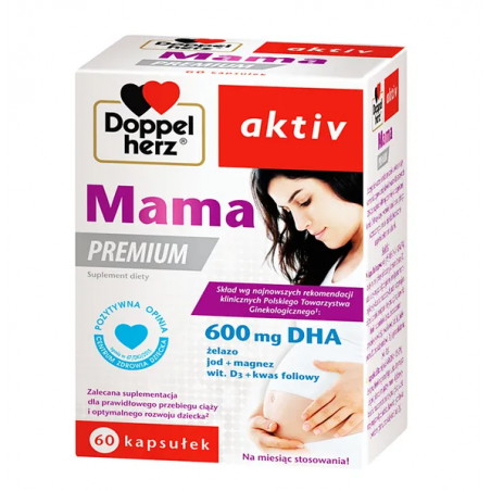 Doppelherz aktiv Mama PREMIUM - suplement diety przeznaczony dla kobiet w ciąży i karmiących piersią.