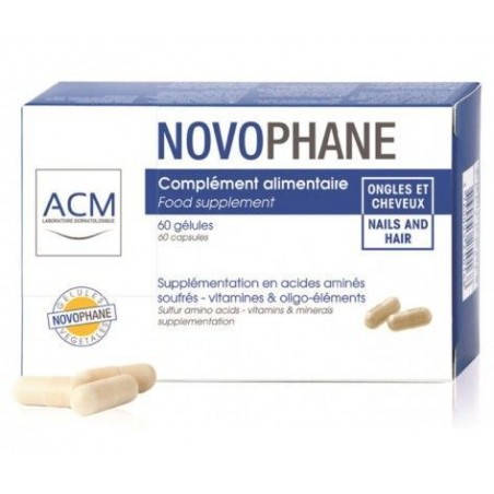 ACM Novophane to suplement diety, który zawiera w swoim składzie 11 składników aktywnych, w tym aminokwasy siarkowe, cenne witaminy i składniki mineralne. Formuła nutrikosmetyku, czyli preparatu wspierającego zdrowie włosów, skóry i paznokci została opracowana z myślą o uzupełnieniu codziennej diety w składniki aktywne.