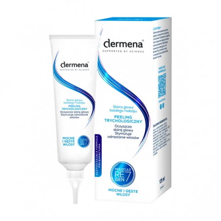 Peeling trychologiczny – skutecznie oczyszcza skórę głowy z martwego, łuszczącego się naskórka, zanieczyszczeń oraz pozostałości po kosmetykach stylizacyjnych. Drobinki peelingujące regulują pracę gruczołów łojowych oraz korzystnie wpływają na stymulację odrastania włosów.