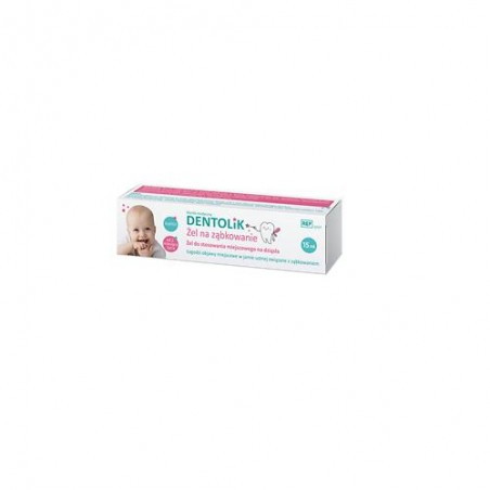 DENTOLIK Żel na ząbkowanie to wyrób medyczny w formie powlekającego żelu stosowany miejscowo w celu utworzenia ochronnego filmu na powierzchni dziąseł. Łagodzi objawy w tym ból, obrzmienie, zaczerwienienie i ślinienie spowodowane ząbkowaniem. Ma przyjemny malinowy smak. Wyrób przeznaczony dla niemowląt od 2. miesiąca życia.