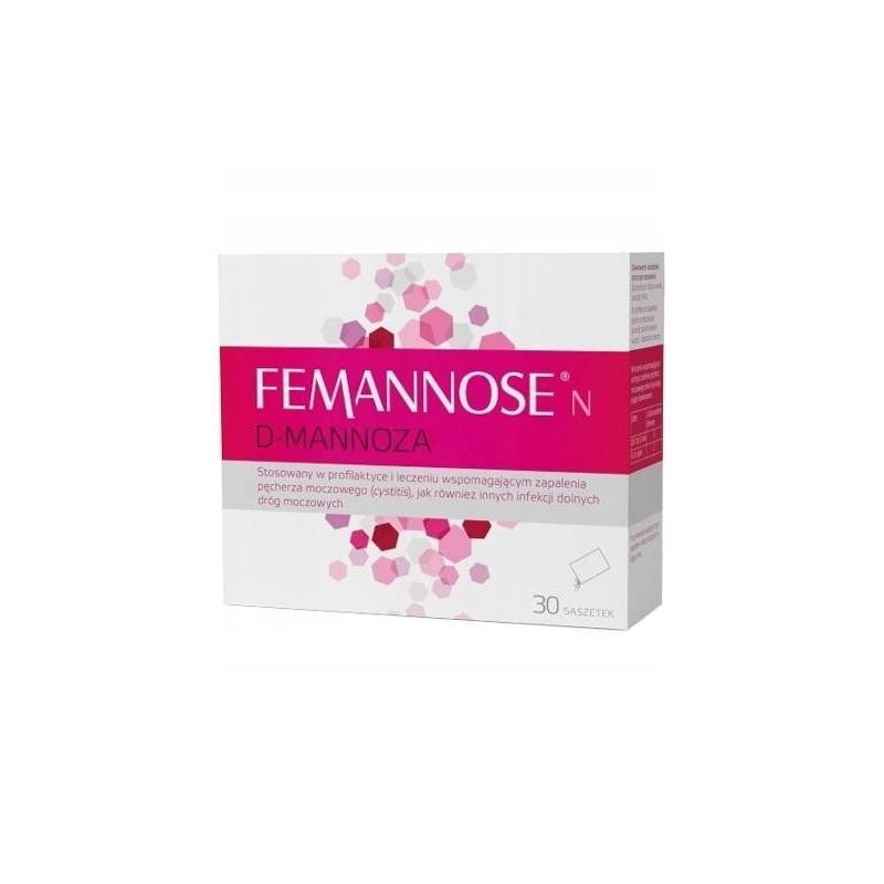 Femannose N to wyrób medyczny w postaci proszku z D-mannozą, stosowany profilaktycznie i wspomagająco w leczeniu zapalenia pęcherza moczowego oraz infekcji dróg moczowych u dorosłych i młodzieży powyżej 14 lat. D-mannoza uniemożliwia bakteriom przyleganie do dróg moczowych i pomaga w ich usunięciu z moczem, łagodząc objawy takie jak pieczenie i częstomocz.