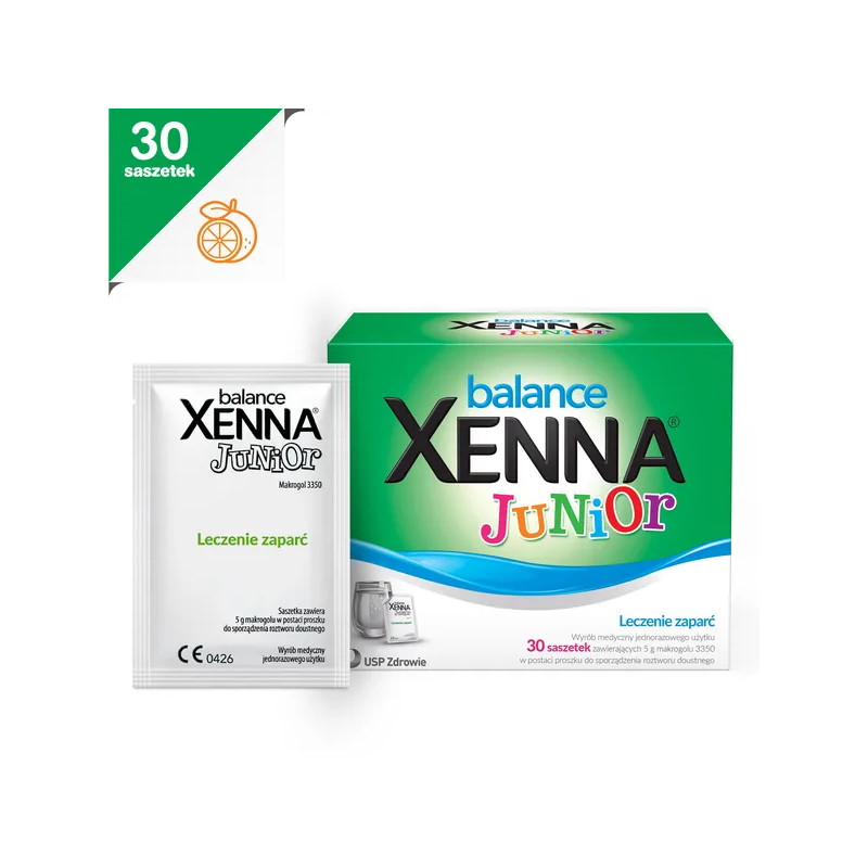 Xenna Balance Junior to nowoczesny preparat, który w naturalny sposób reguluje pracę jelit dziecka. Substancją aktywną produktu jest makrogol 3350, który dzięki wysokiej skuteczności i bezpieczeństwie jest obecnie środkiem zalecanym w terapii zaparć u dzieci. Xenna Balance Junior działa miejscowo w obrębie jelita grubego i nie jest wchłaniana do organizmu. Substancję aktywną preparatu charakteryzuje wyjątkowa zdolność wiązania wody, dzięki czemu zmiękcza ona stolec ułatwiając wypróżnianie. Przywrócenie prawidłowego stopnia nawodnienia mas kałowych prowadzi do pobudzenia naturalnych ruchów jelit, a w konsekwencji do wypróżnienia. Xenna Balance Junior ma postać proszku do sporządzania roztworu doustnego. Produkt posiada przyjemny pomarańczowy smak, jest dostępny w poręcznych saszetkach.