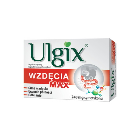 Ulgix Wzdęcia Max stosowany jest w łagodzeniu objawów związanych z nagromadzeniem gazów w żołądku i jelitach powstałych w wyniku fermentacji jelitowej w czasie procesów trawienia. Należą do nich: uczucie pełności, wzdęcia, odbijanie, które mogą być m.in. wynikiem błędów dietetycznych. Ulgix Wzdęcia stosowany jest także pomocniczo przed wykonaniem badań diagnostycznych w obrębie jamy brzusznej techniką obrazową, takich jak: radiografia, ultrasonografia i endoskopia. Przyczynia się do usunięcia z przewodu pokarmowego gazów i powietrza, przez co poprawia jakość uzyskiwanych obrazów i eliminuje trudności diagnostyczne.