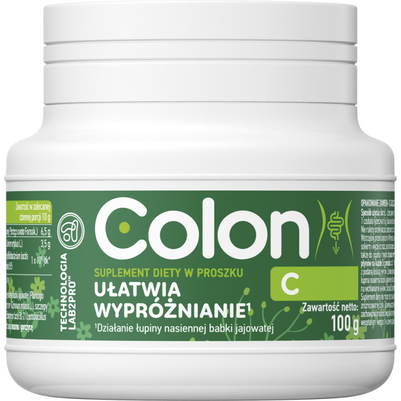 Colon C - suplement diety w proszku, zawierający składniki wspomagające utrzymanie zdrowych jelit. Preparat przeznaczony dla dorosłych i dzieci powyżej 12 go roku życia.