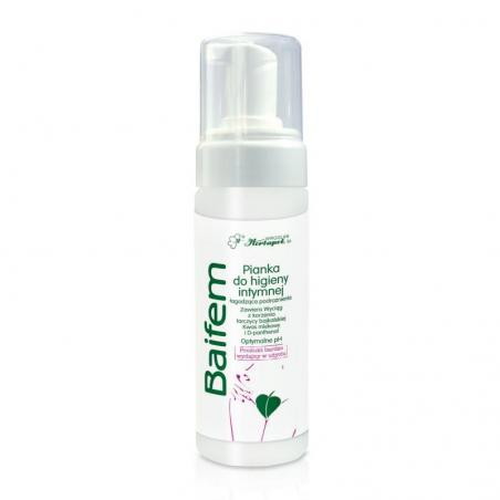 Baifem Pianka do higieny intymnej to bezzapachowy produkt do codziennej pielęgnacji, idealny do łagodzenia podrażnień i zapewniania odpowiedniego pH wrażliwych miejsc intymnych. Dzięki wyciągowi z tarczycy bajkalskiej, kwasowi mlekowemu i D-pantenolowi, koi mikrourazy, działa przeciwbakteryjnie, nawilża i regeneruje, sprawdzając się również w okresach zwiększonej podatności na infekcje.