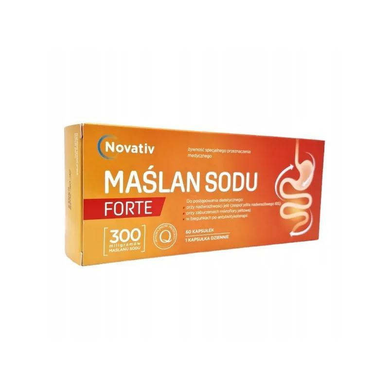 Novativ Maślan Sodu Forte to dietetyczny środek spożywczy specjalnego przeznaczenia medycznego, przeznaczony dla dorosłych i dzieci od 7. roku życia. Zawarty w nim maślan sodu wspiera prawidłowe funkcjonowanie jelit.