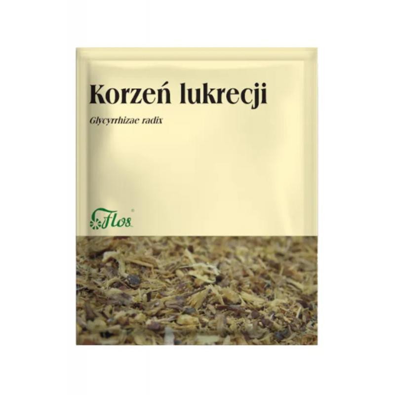 Korzeń lukrecji (Glycyrrhizae radix) to produkt leczniczy w formie zioła do zaparzania. Stosuje się go pomocniczo w chorobie wrzodowej żołądka oraz jako środek wykrztuśny w kaszlu, który towarzyszy schorzeniom górnych dróg oddechowych.
