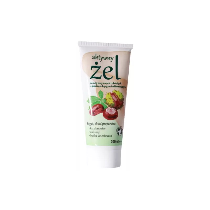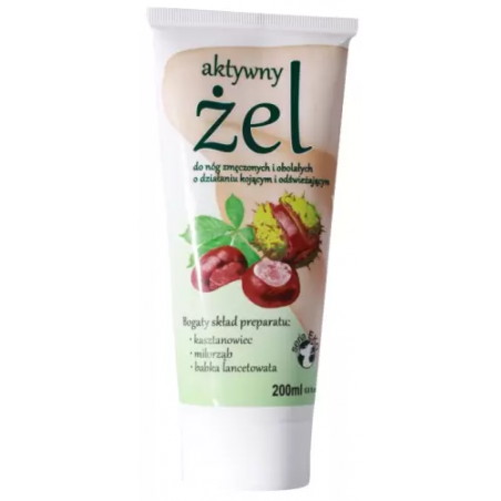 Aktywny żel z kasztanowcem, miłorzębem i babką lancetowatą do nóg zmęczonych i obolałych o działaniu kojącym i odświeżającym.